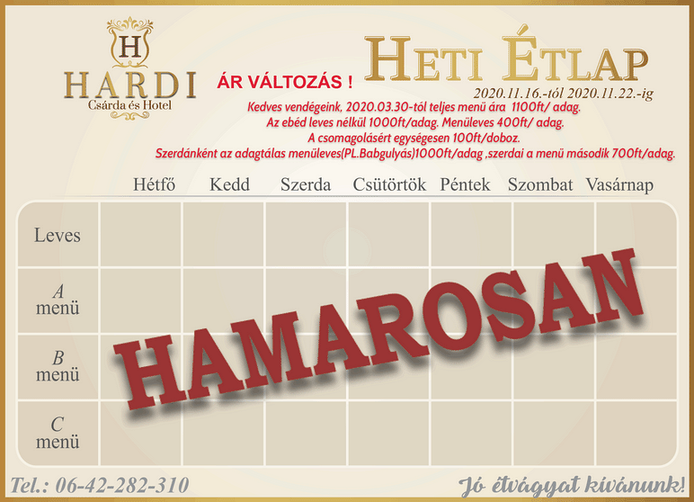 Tájékoztatjuk kedves vendégeinket,